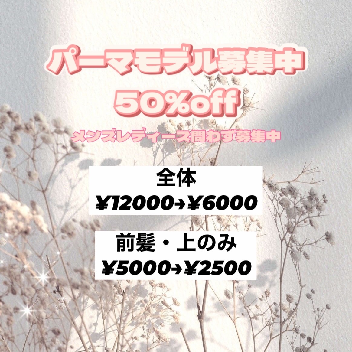 50%offで施術致します!