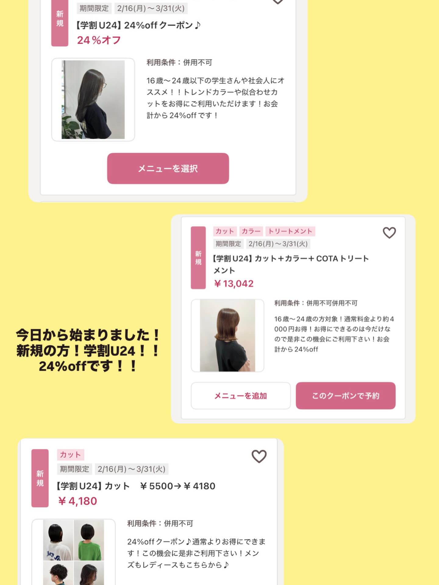 学割U24 お会計から24%offを出しました!!