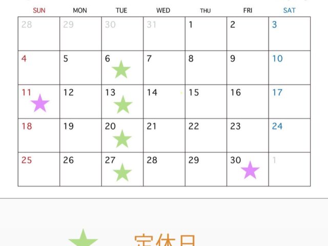 遅くなってしまいましたが 6月のお休みです♪ 土日はご予約が埋まりやすい為、 お早めのご連絡がオススメです♀️ ホットペッパーで×になっているところは一度サロ…
