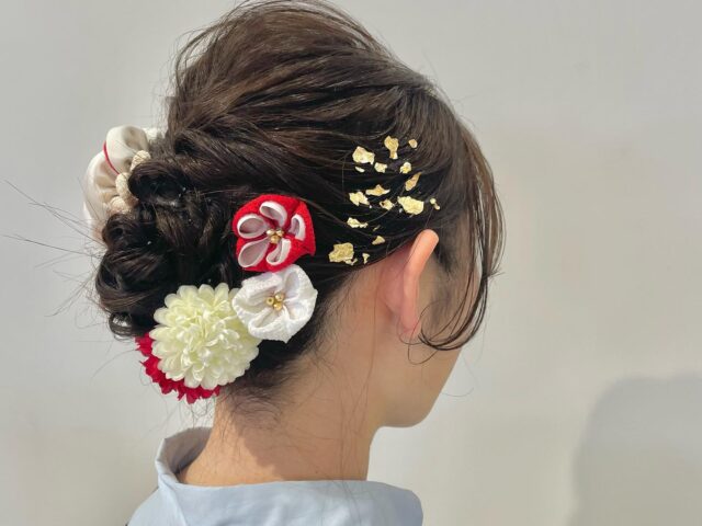 成人式の後撮りでヘアセットとメイクをさせ
