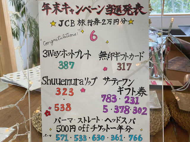年末キャンペーン抽選発表!