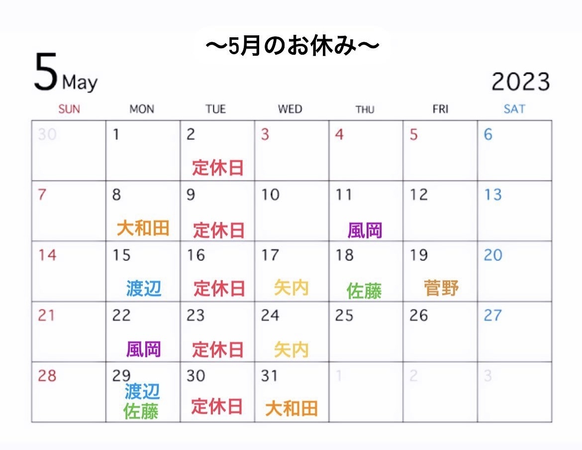 5月のお休み